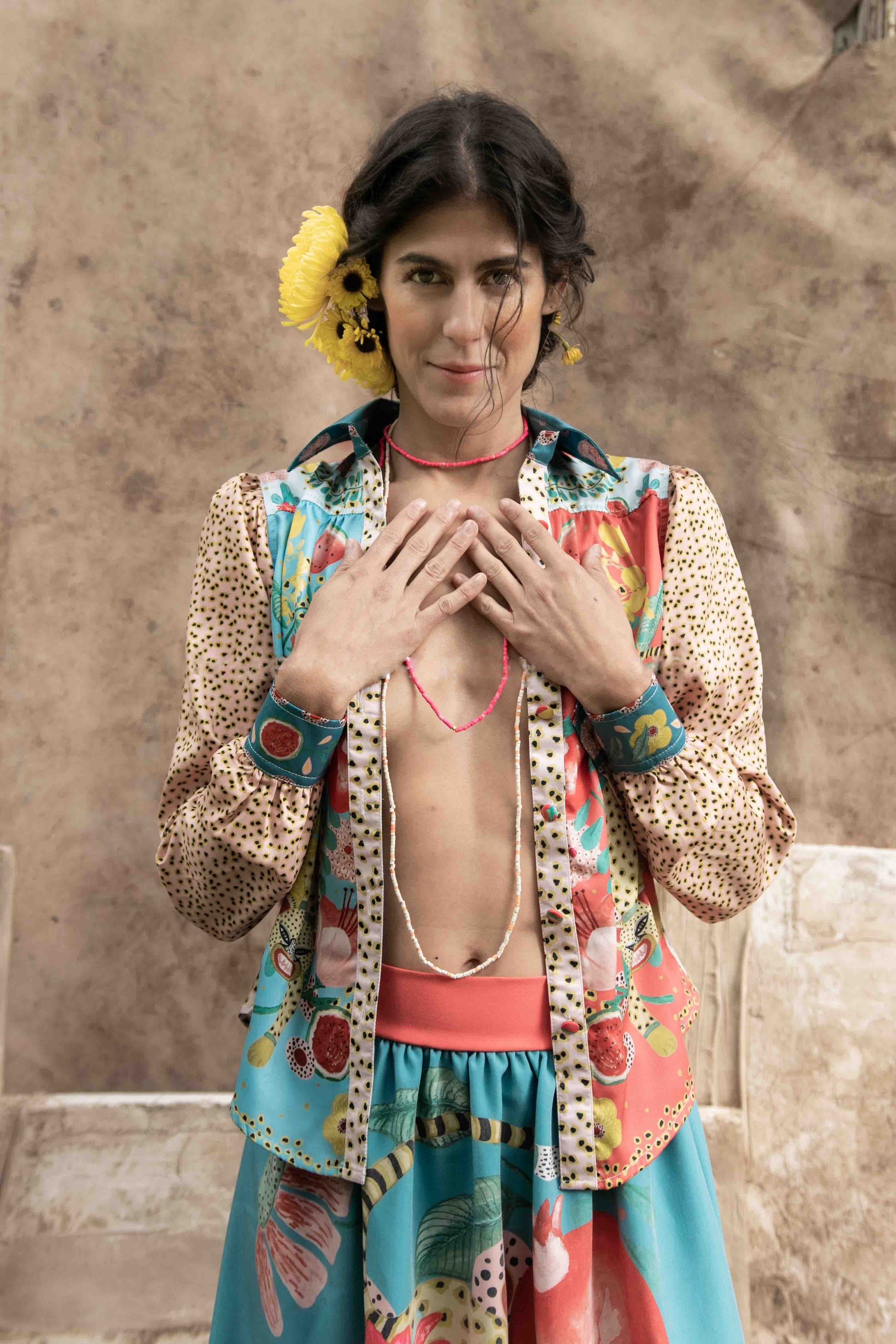 La Camisa Estampada de Manga Larga es una pieza protagonista creada para celebrar la ilustración como algo que se viste, no que se enmarca. Con un estampado exclusivo ilustrado a mano, aporta color, narrativa y una confianza serena a una silueta atemporal.